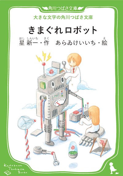 - 8月5日、読書工房めじろーブックスより、大きな文字の角川つばさ文庫『きまぐれロボット』が発売になりました。角川つばさ文庫『きまぐれロボット』と収録作品は同じ。大活字(22ポイント)の児童書です。