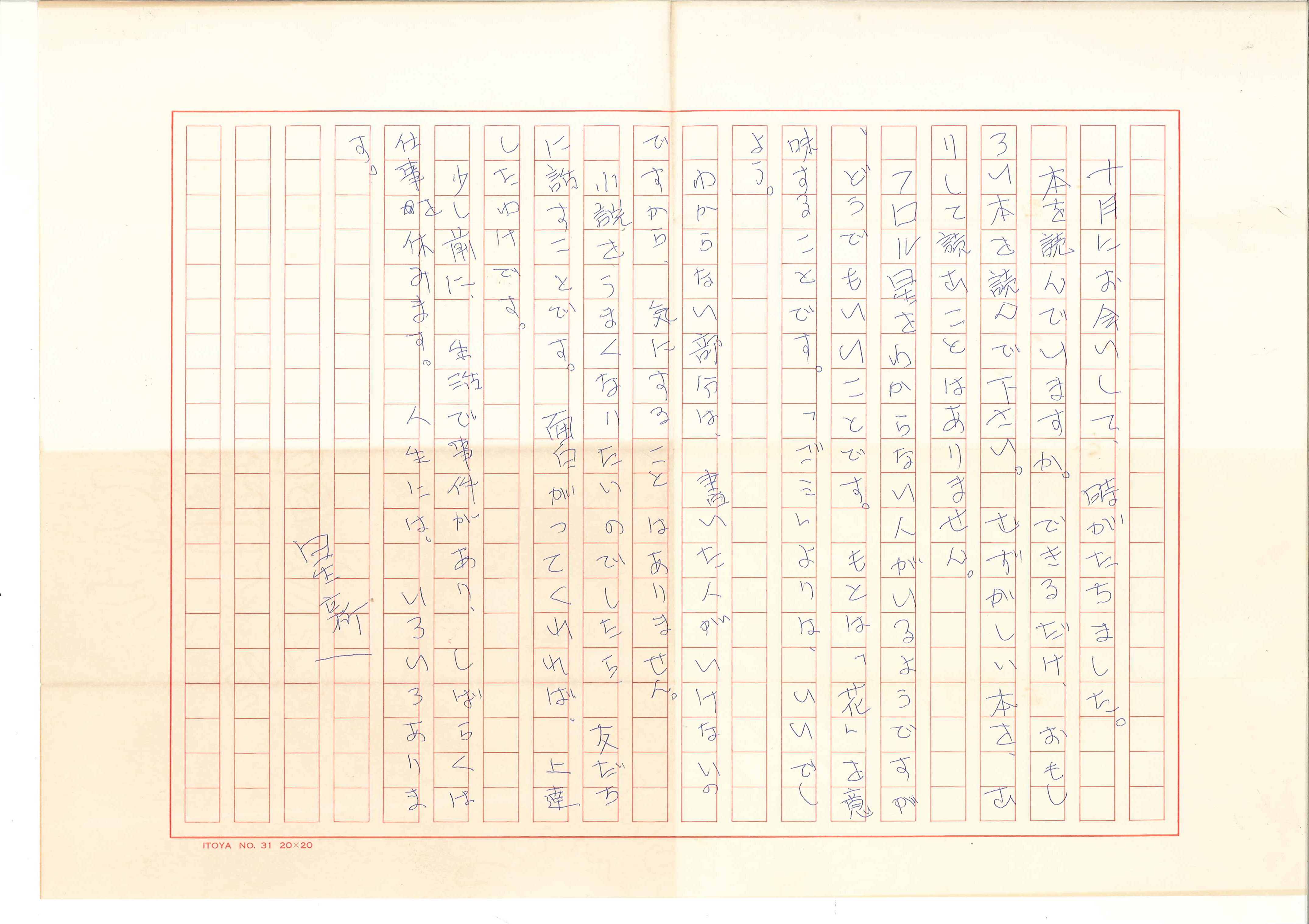 ひと月ほど経って、学校に新一さんからの手紙が届いたのです。