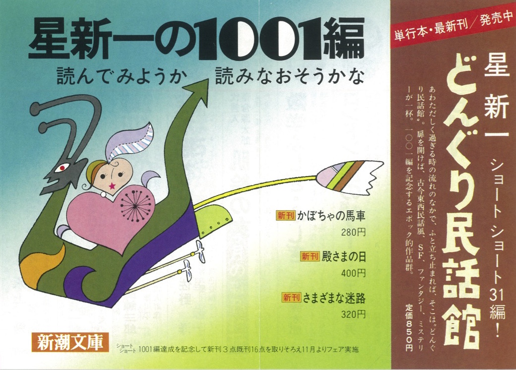 1001編達成に当たり、新潮文庫ではその名もずばり、「星新一の1001編」というフェアを開催しました。 その時のキャッチコピーが、「読んでみようか 読みなおそうかな」です。 実はこのコピー、星新一作なのですが、このコピーにも、改版作業での星さんの姿勢に通じる、読者への思いが反映されているような気がします。